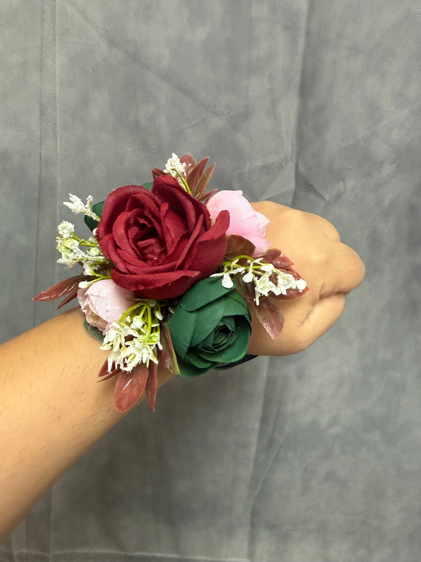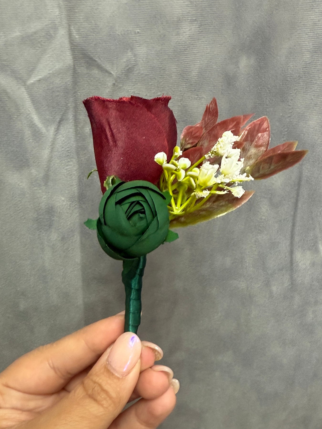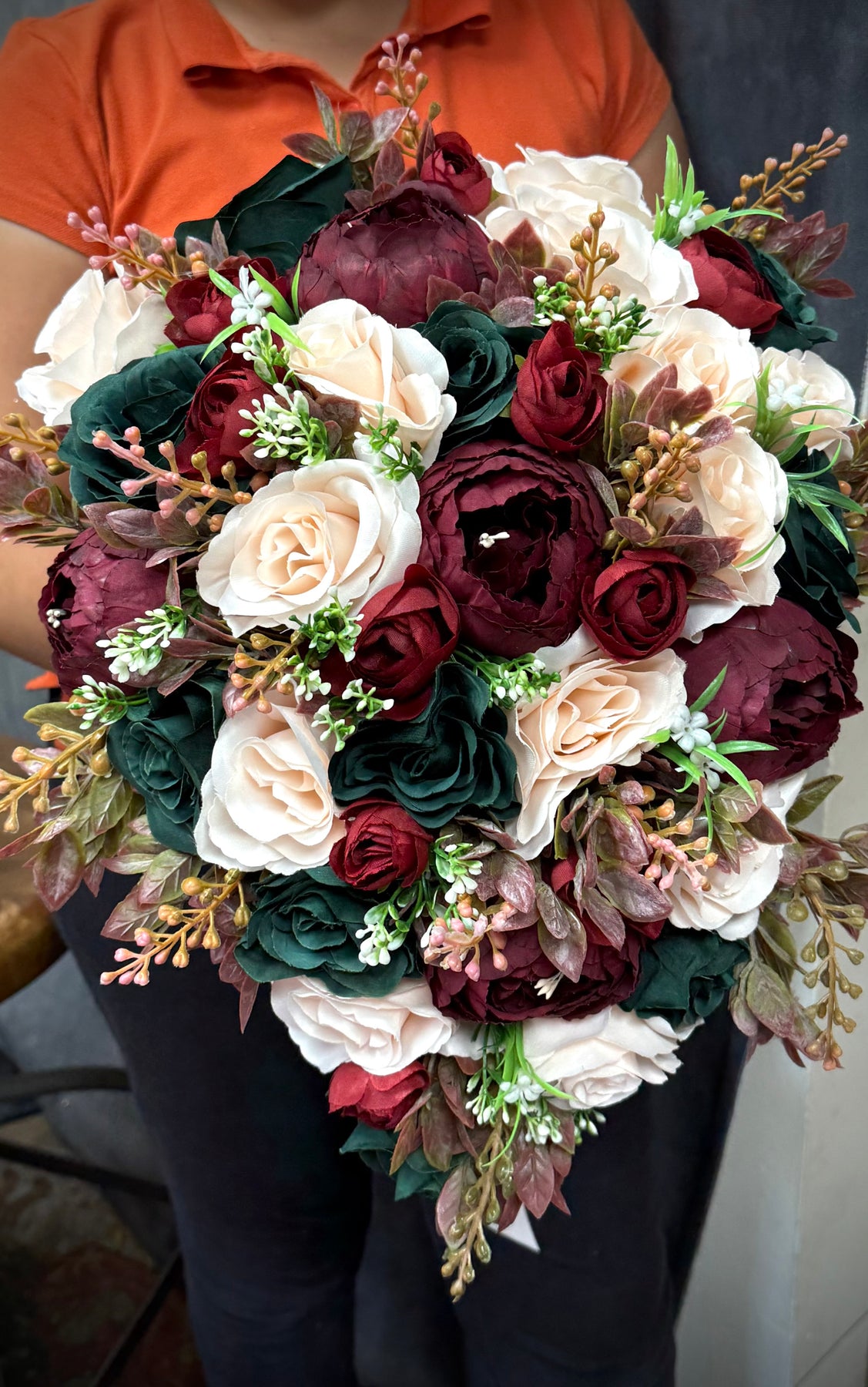 This is a beautiful real touch Maroon Burgundy Blush Green Wedding Bouquet, made with the most realistic silk flowers. We can add different colors if you'd like to.
